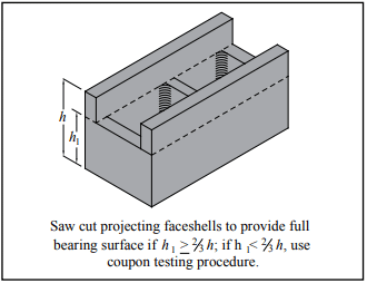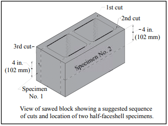 - If saw-cutting does not produce a test specimen complying with the above provisions, coupons may be saw-cut from the face shells (see Figure 4).