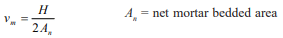 When walls are laid in a running bond pattern, either with mortar joints or with surface bonding, and tested in the horizontal span, (i.e., a wall supported at each end is subjected to a horizontal wind force) the strength in bending depends primarily on the strength of the units. This is due to the interlocking of the masonry units laid when in a running bond configuration. In such tests in the horizontal span, the wall strength of the surface bonded wall is exactly the same as the conventional construction. In Table 1, an allowable flexural stress of 30 psi (0.21 MPa) is recommended for horizontal span when the units have been laid in running bond.