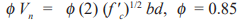 Determine effective depth, d: Assuming an 8 in. (203 mm) high lintel with two No. 4 (13M) bars, d = 7.625 in. – 1.5 in. – 0.5/2 in. = 5.88 in. (149 mm)