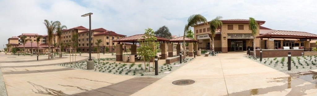 New and updated facilities at Camp Pendleton were needed to accommodate increasing numbers of military personnel and their families assigned to the busy base. A $3.1 billion, multiyear modernization plan for the nation’s main amphibious training site was put into motion by the Naval Facilities Engineering Command (NAVFAC) Southwest in 2010, and much of it came online in 2013. These durable and secure structures are attractive, inviting buildings, often clustered together as small communities with their own town centers.