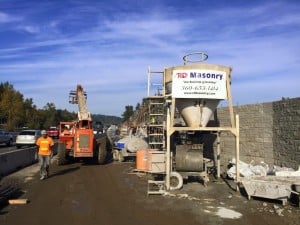 Another major factor for WSDOT is the prolific graffiti in the area. “Planners wanted to utilize surfaces that discourage graffiti, and materials that can be easily painted over in the event the wall does get tagged” according to Reynolds. “So we proposed a 6-inch wide double-sided split face block.” R&D Masonry recommended the texture and the use of an Ashlar pattern, both of which would discourage vandalism.