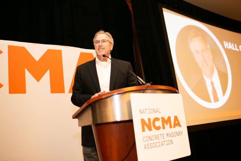 In 2018, Kent was named NCMA’s Chair of the Board. Many were surprised that he could convert his deadpan stoicism into impressive oration. He delivered one of the more notable addresses in which he challenged the audience to imagine what the future can be for concrete masonry.
