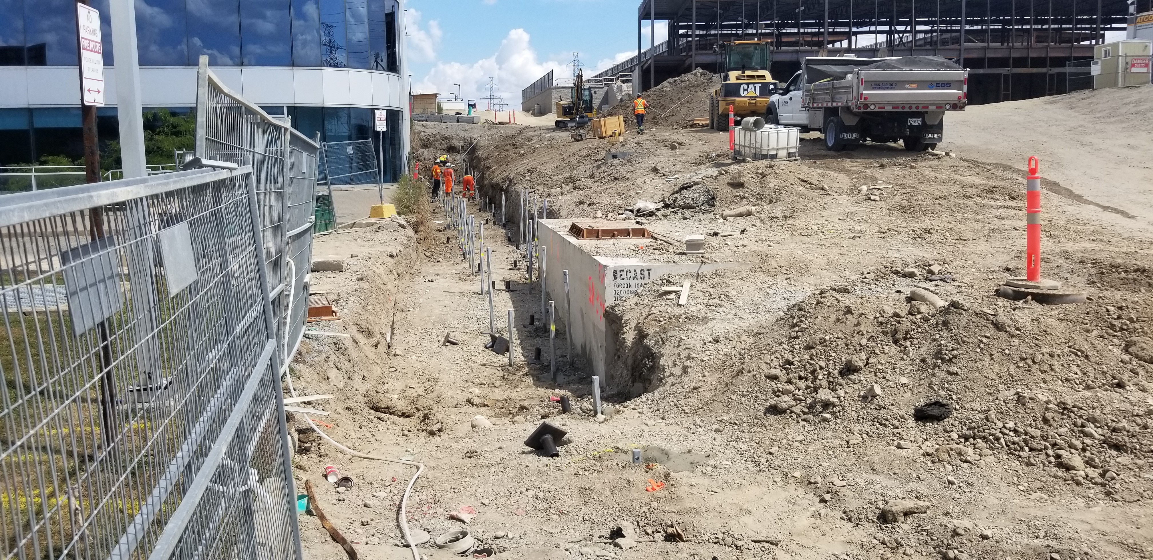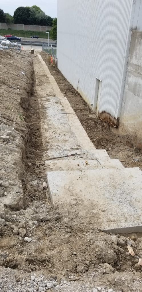 “And I actually had just finished a project up in Northern Ontario, for a waterfront project over sediment deposits where we drove steel pilings into the ground and put a concrete slab on top of that. Then we built the wall above that. So we decided to examine that approach,” Herold said.