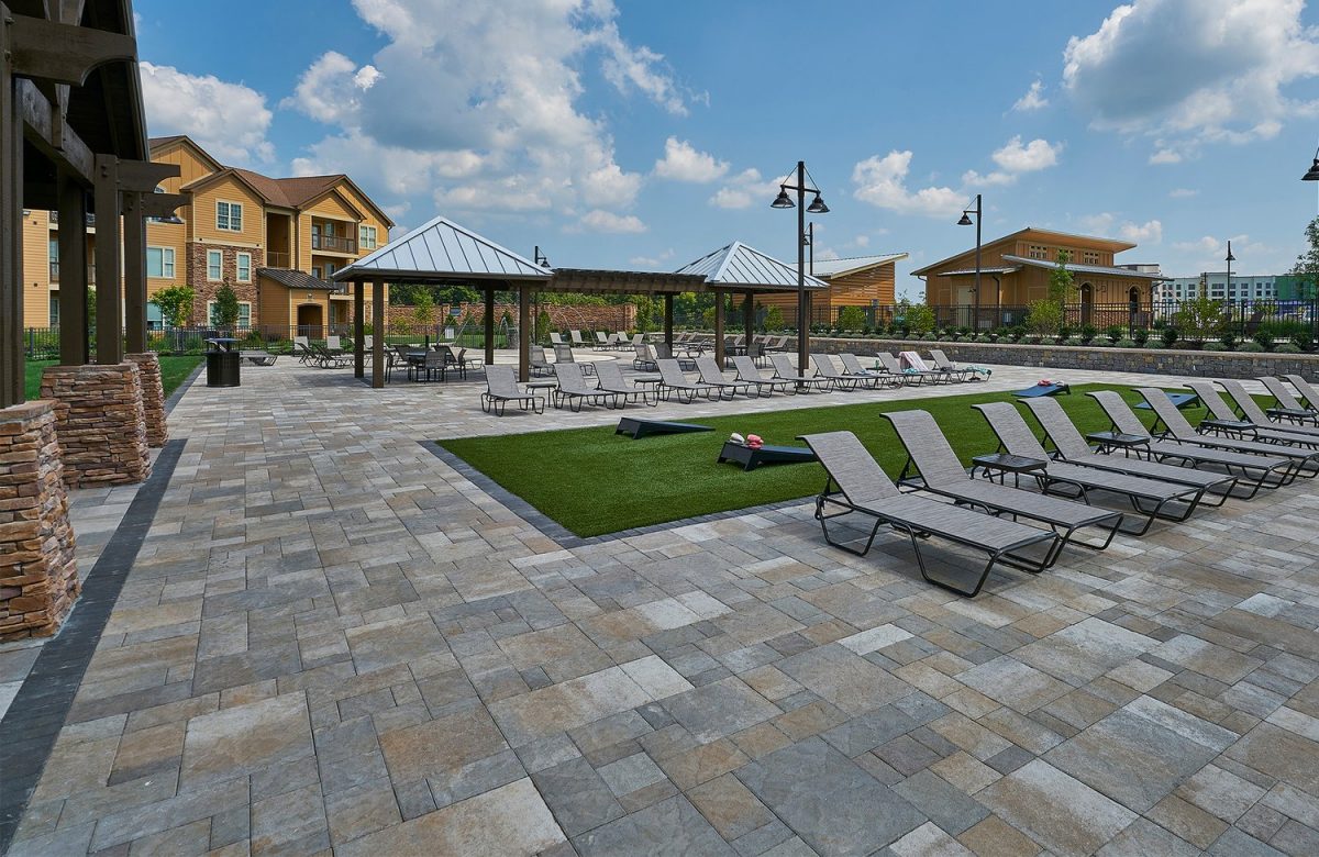 The project’s goal was to provide a focal point for residents to relax with their friends and families. Families could either play games in the green space, take in a local band, have a glass of wine near the fireplace, or enjoy the pool, splash pad, and zero-entry wading pool.