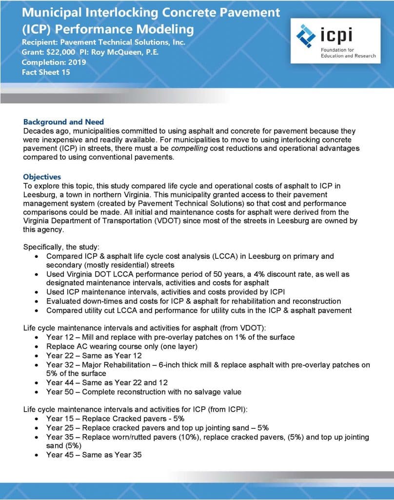 Municipal Interlocking Concrete Pavement Performance Modeling