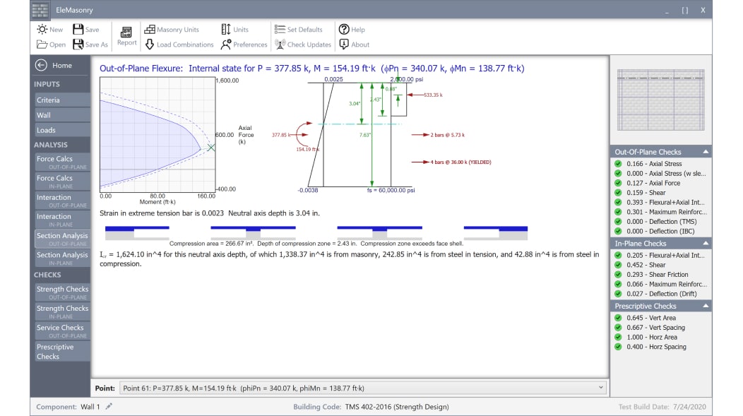 The software quickly and easily designs walls, columns, beams and pilasters. Code-compliant designs are provided through a fully transparent design process and output, allowing the user to review and check all design calculations.