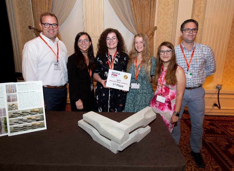 Two college teams presented their unique, fresh concrete masonry unit (CMU) designs at the 2021 Unit Design Competition (UDC) during NCMA’s Midyear event at the Pfister Hotel in Milwaukee, Wisconsin. Judges reviewed and scored the designs prior to the event and the results were announced during the meeting. The team from Mississippi State University took the top prize over second place Iowa State.
